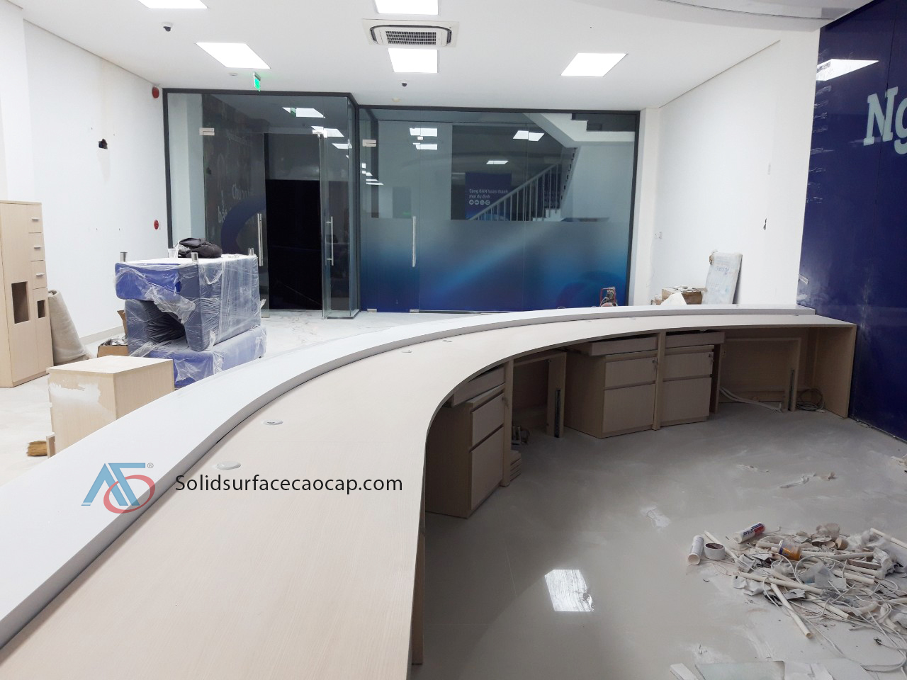 Lắp đặt mặt quầy lễ tân cong cho ngân hàng Bản Việt