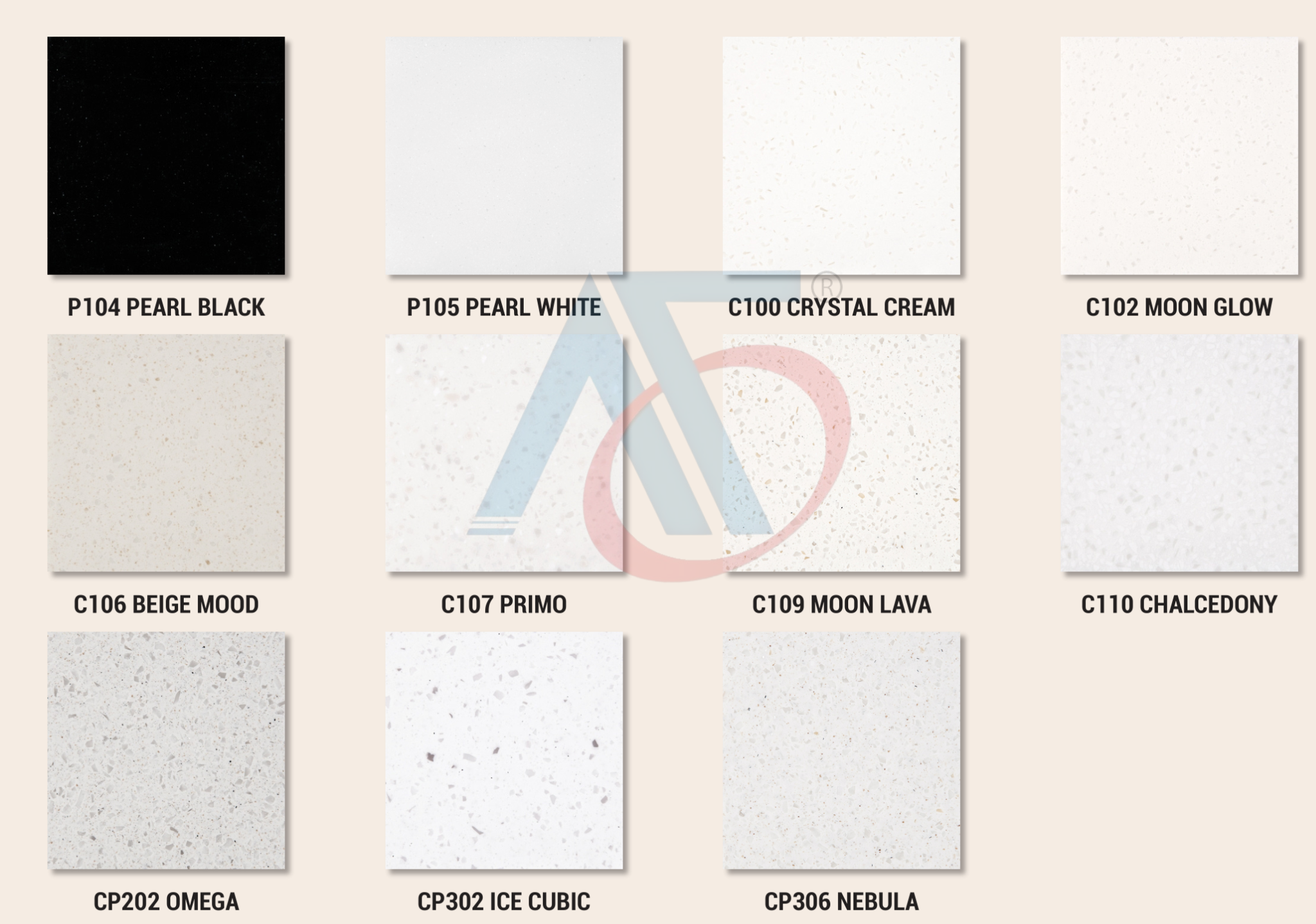 - Với hàng trăm mẫu và màu sắc, đa dạng về màu đá cho khách hàng lựa chọn theo phong cách của mình. Từ đơn sắc đến các kiểu hạt, từ trơn đến các đường vân mây đa dạng.