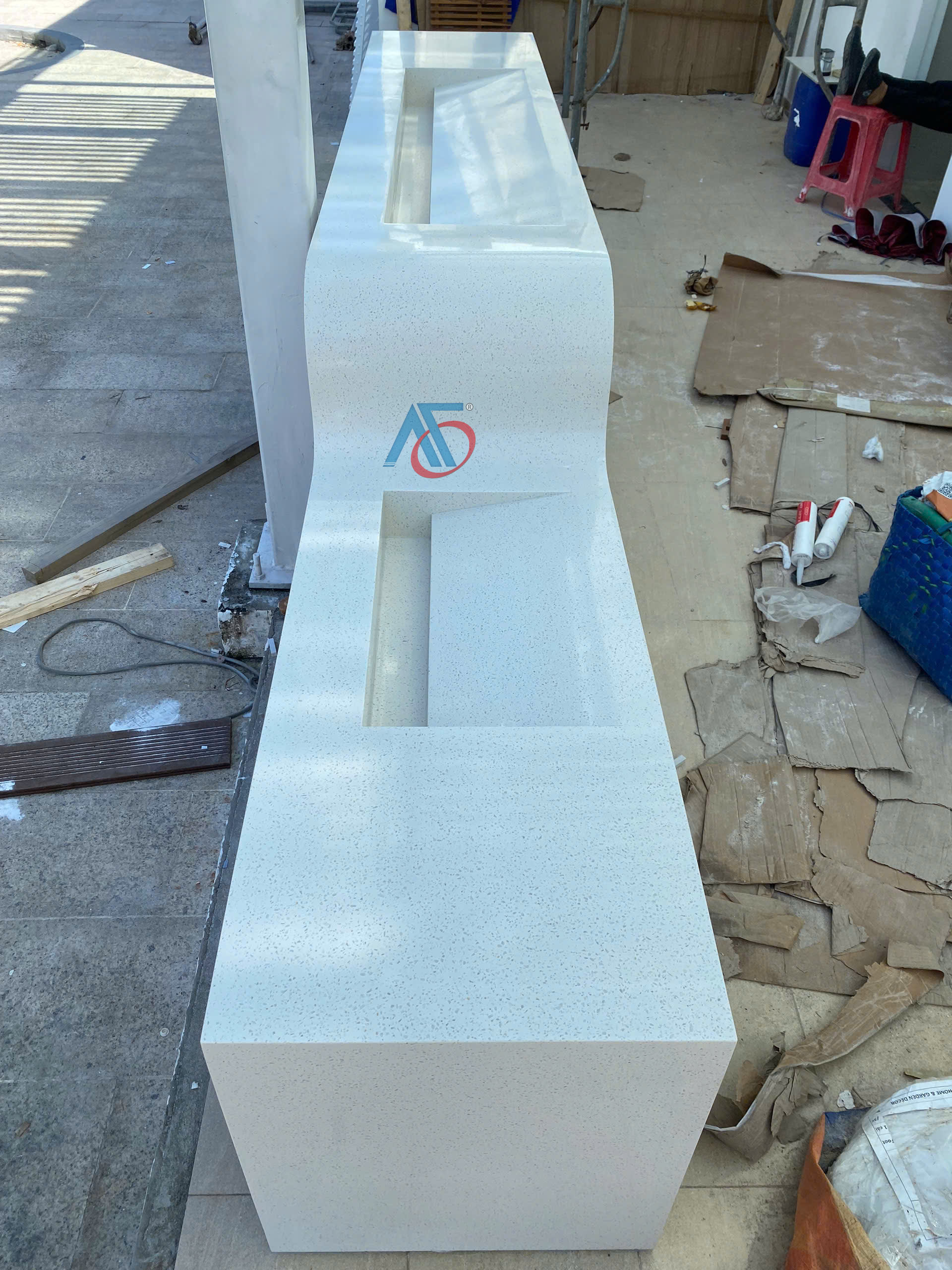 Nội thất AOF chuyên thi công hoàn thiện các sản phẩm về đá Solid Surface làm mặt đá lavabo, chậu rửa Lavabo, mặt bếp, bàn đảo, quầy lễ tân,bồn tắm,…Các sản phẩm về đá nhân tạo solid surface luôn được đảm bảo về chất lượng, màu sắc sang trọng, thi công nhanh chóng, bảo hành sản phẩm 5 năm.