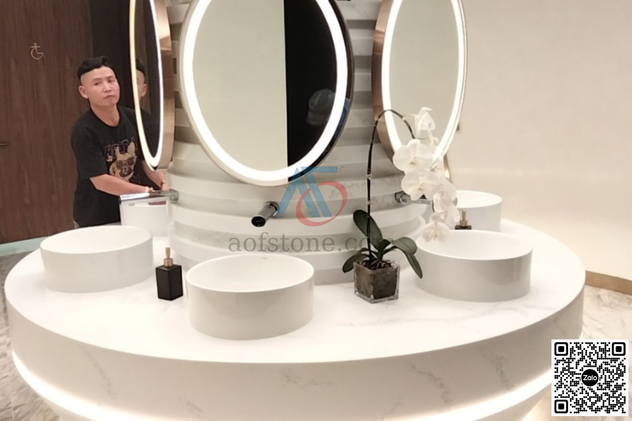 Nội thất AOF cung cấp và thi công các sản phẩm về Lavabo từ đá nhân tạo Solid Surface theo yêu cầu của khách hàng về thiết kế, hình dạng, màu sắc, kích thước... là hàng không có sẵn.