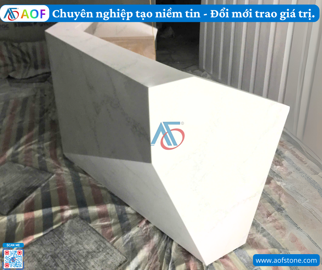 Quầy lễ tân đóng vai trò là bộ mặt của doanh nghiệp, nơi tạo ấn tượng đầu tiên với khách hàng. Việc lựa chọn quầy lễ tân bằng vật liệu Solid Surface với thiết kế riêng không chỉ mang lại tính thẩm mỹ mà còn mang nhiều lợi ích vượt trội khác. Tại Quảng Ngãi, công ty AOF chuyên thi công quầy lễ tân Solid Surface theo thiết kế riêng, đảm bảo tuân thủ quy trình chuyên nghiệp, mang đến giải pháp tối ưu nhất cho doanh nghiệp.
