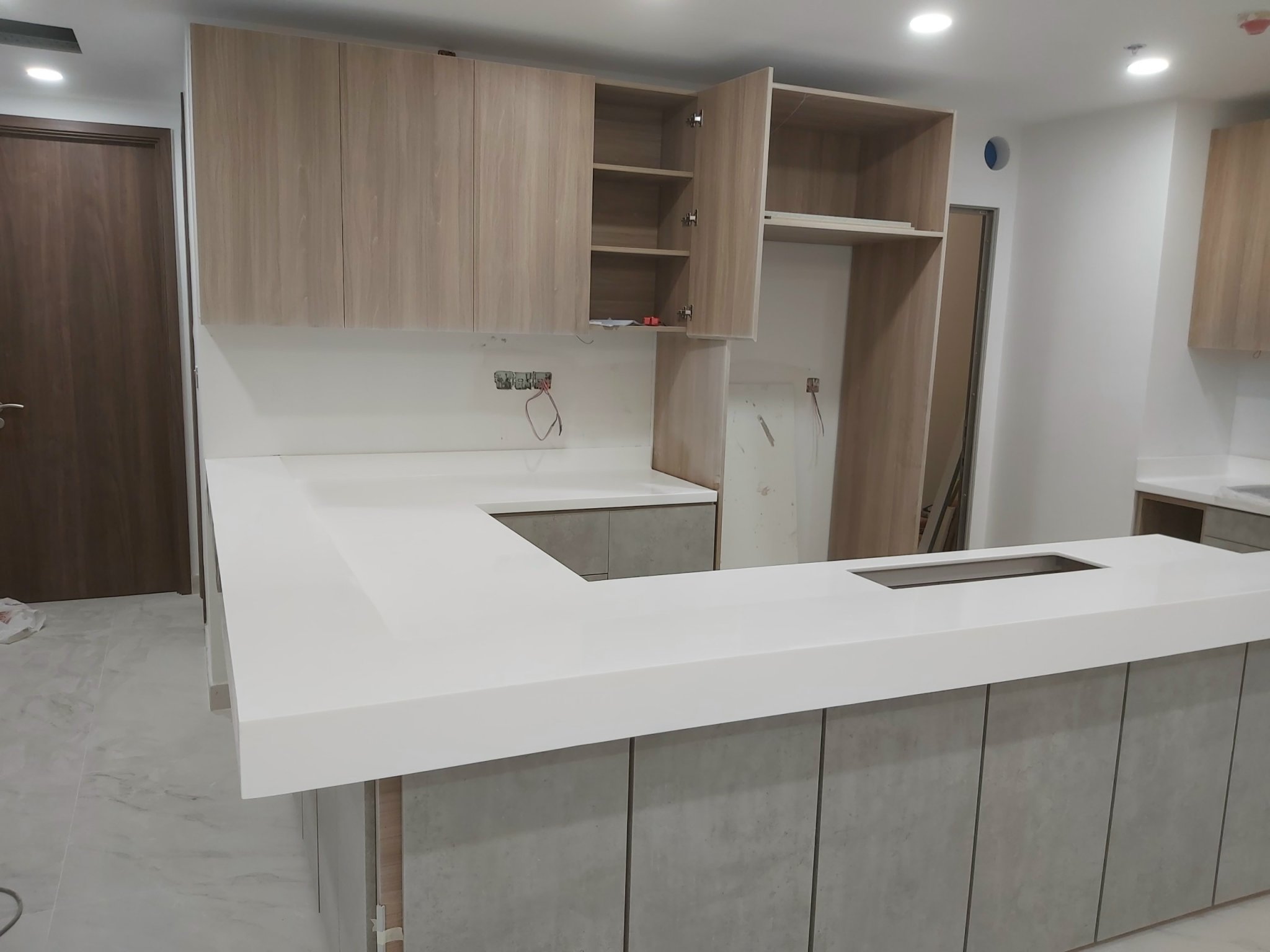 Giá thi công bếp đá solid surface chống thấm liền mạch Long An bao nhiêu?