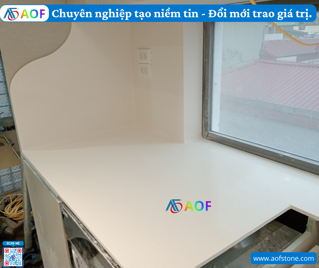 Đá solid surface nổi bật với khả năng chống thấm nước, chống bám bẩn và dễ dàng vệ sinh. Điều này rất quan trọng trong môi trường bếp, nơi ẩm ướt và dễ bị dính bẩn. Hơn nữa, bề mặt đá mịn màng cũng mang lại cảm giác sang trọng, thân thiện với người dùng.