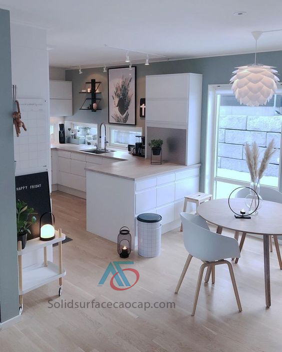 Nội thất AOF cung cấp và thi công hoàn thiện các sản phẩm mặt đá bếp từ Đá nhân tạo Solid Surface cao cấp từ Hàn Quốc.