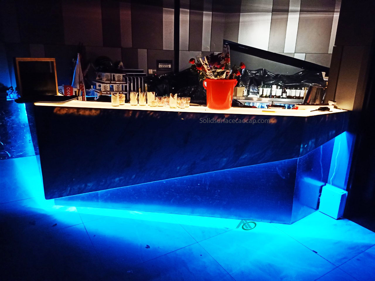 Quầy bar đang được thiết kế với nhiều kiểu dáng và màu sắc tạo điểm nhấn nổi bật và thu hút khách hàng mỗi khi ghé quán.