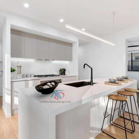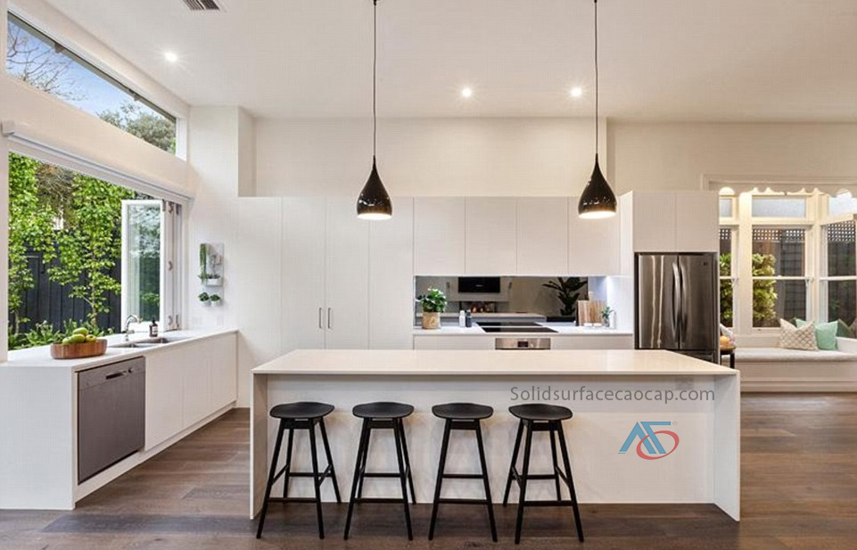 Không gian bếp luôn sang trọng và sáng bóng với Đá Solid Surface