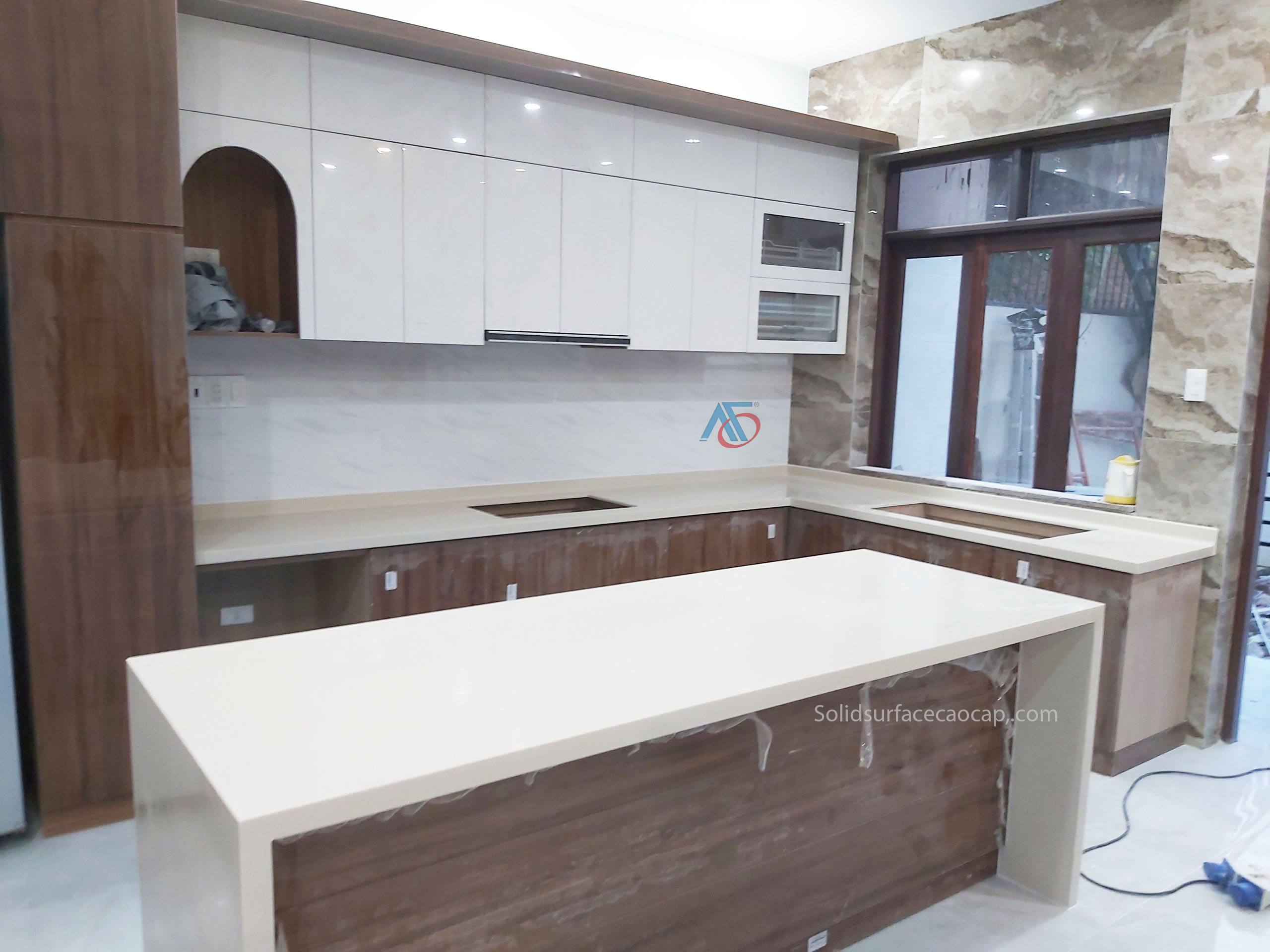 Không gian bếp là nơi tạo nên sự ấm áp cho ngôi nhà, vì thế việc thiết kế và lựa chọn vật liệu luôn được chủ nhân ngôi nhà chú trọng. Bếp không chỉ là là nơi trao đổi thông tin, giao lưu tình cảm của các thành viên trong gia đình sau 1 ngày làm việc mệt mỏi mà còn là nơi mang đến cho tất cả các thành viên trong gia đình một sức khỏe dồi dào và dẻo dai. Vì vậy, các kiến trúc sư hay khách hàng thường lựa chọn đá nhân tạo Solid Surface sử dụng để thiết kế làm mặt bếp giúp không gian bếp trở nên sang trọng, tiện nghi và hiện đại hơn.