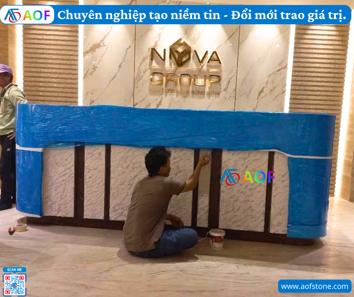 Bài viết này là nhật ký thi công đá solid surface thực tế tại khu vực Đà Nẵng – Huế – Khánh Hòa, nơi đội ngũ AOF đã triển khai nhiều công trình quy mô lớn, đáp ứng tiêu chuẩn thẩm mỹ và kỹ thuật quốc tế.