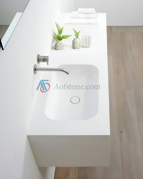 Đây là lavabo đá nhân tạo có yêu cầu kỹ thuật cao hơn so với các loại lavabo khác về chi tiết gia công như bo ghép cạnh hay khung đỡ an toàn, chịu được lực tác động trong quá trình sử dụng. Với thiết kế lavabo đá nhân tạo liền một khối, dễ dàng lau chùi đảm bảo mọi yêu cầu về vệ sinh, an toàn cho người sử dụng.