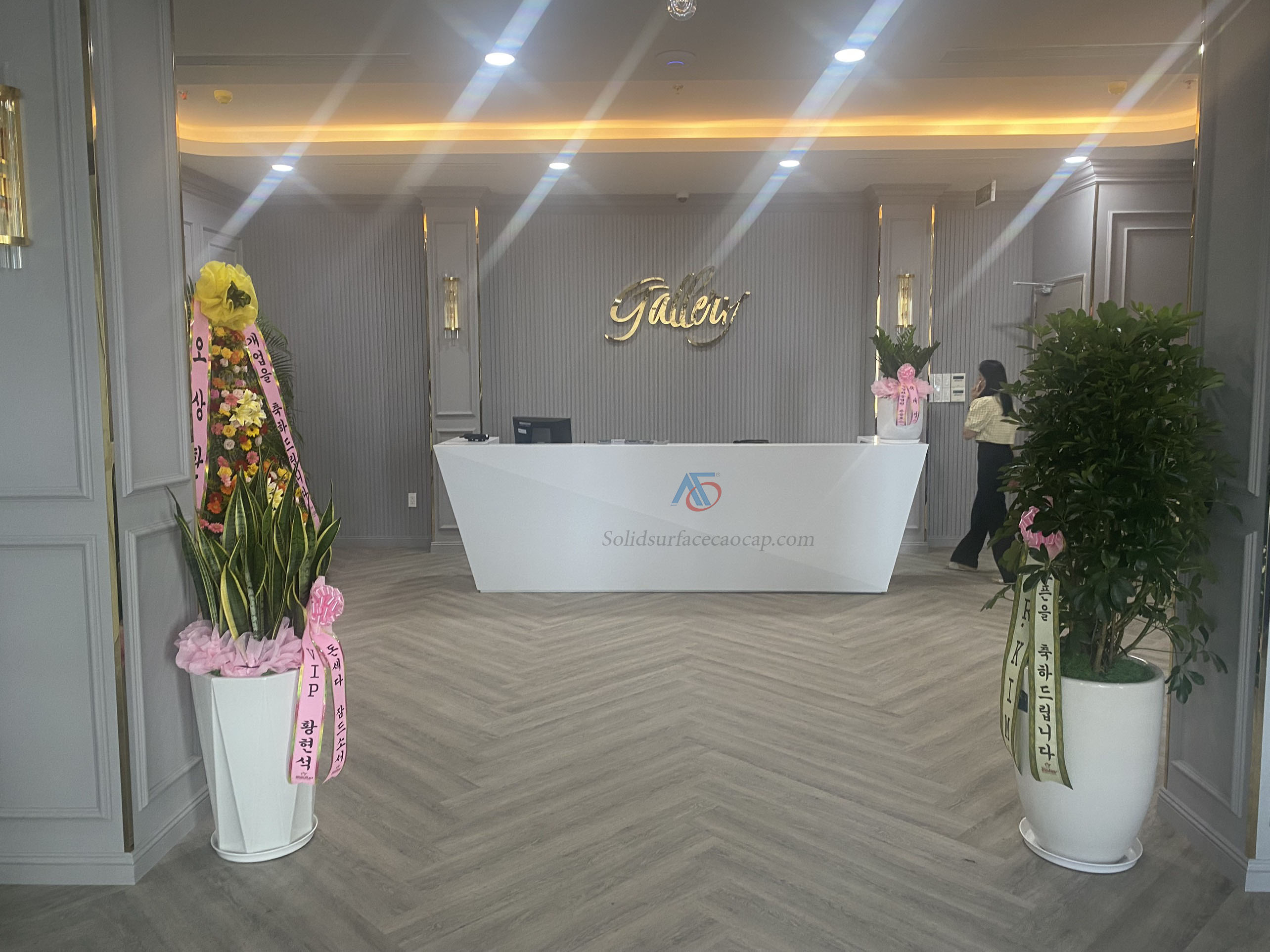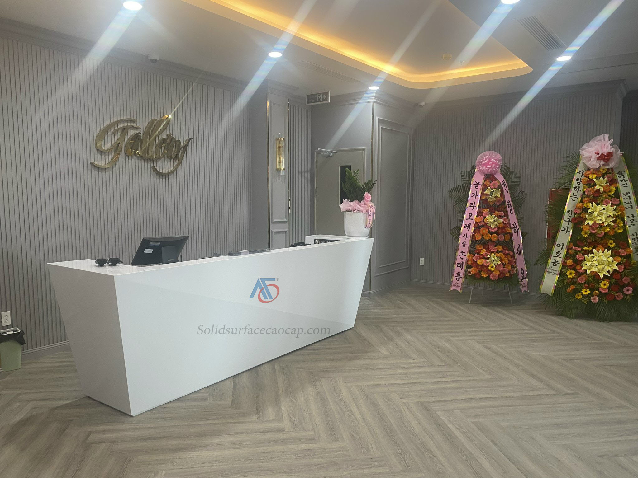 Ngày nay, quầy lễ tân thường được xây dựng ở những căn hộ cao cấp. văn phòng làm việc…là nơi tiếp nhận và xử lý những vấn đề về hành chính hoặc giải đáp những thắc mắc giữa khách hàng với công ty, khách sạn, cơ quan nhà nước, trường học, bệnh viện… Một quầy lễ tân làm từ đá nhân tạo Solid Surface Hàn Quốc sẽ mang lại cho bạn không gian sang trọng và đẳng cấp, giúp cho bộ mặt công ty luôn sạch sẽ và ấn tượng trong mắt các đối tác.