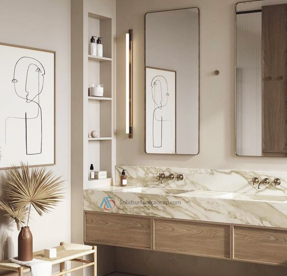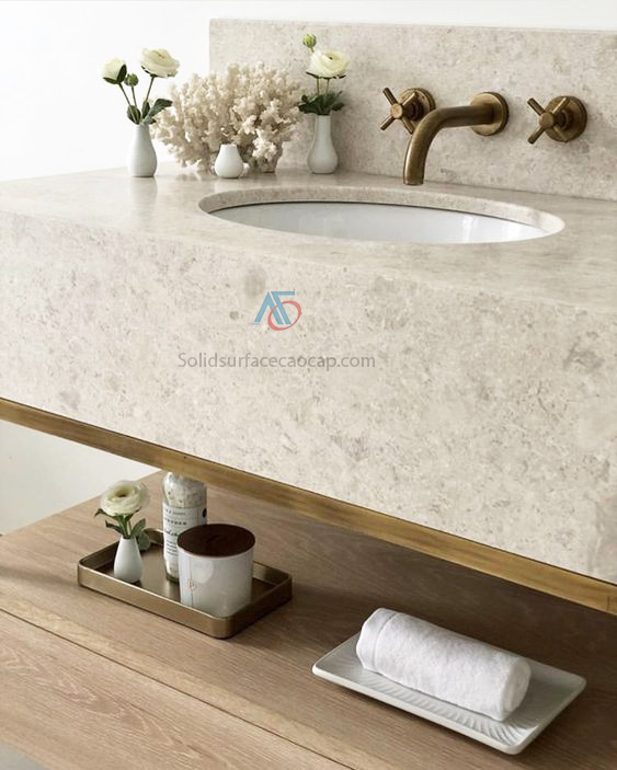 Với rất nhiều ưu điểm vượt trội Đá Solid Surface được đánh giá rất cao và nhiều khách hàng yêu thích kiểu mặt đá lavabo từ nó.