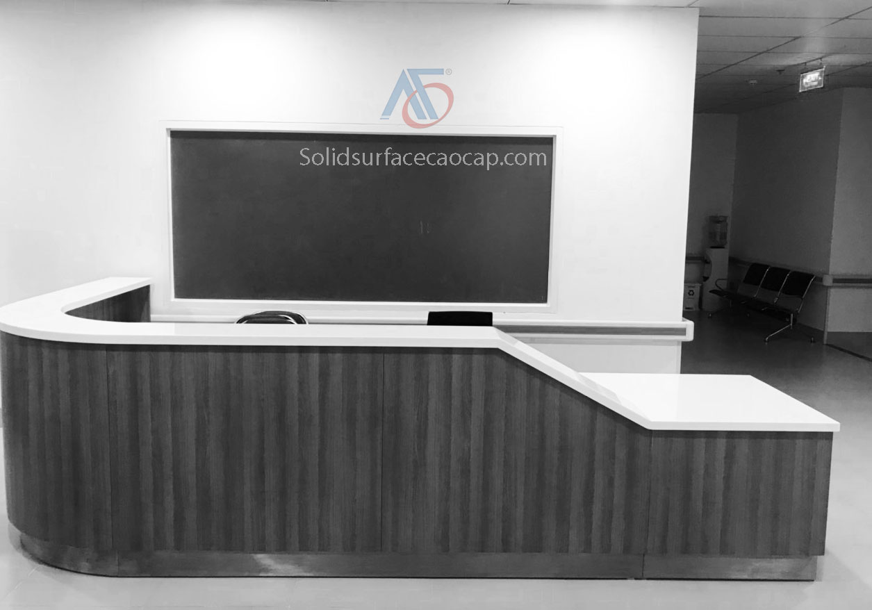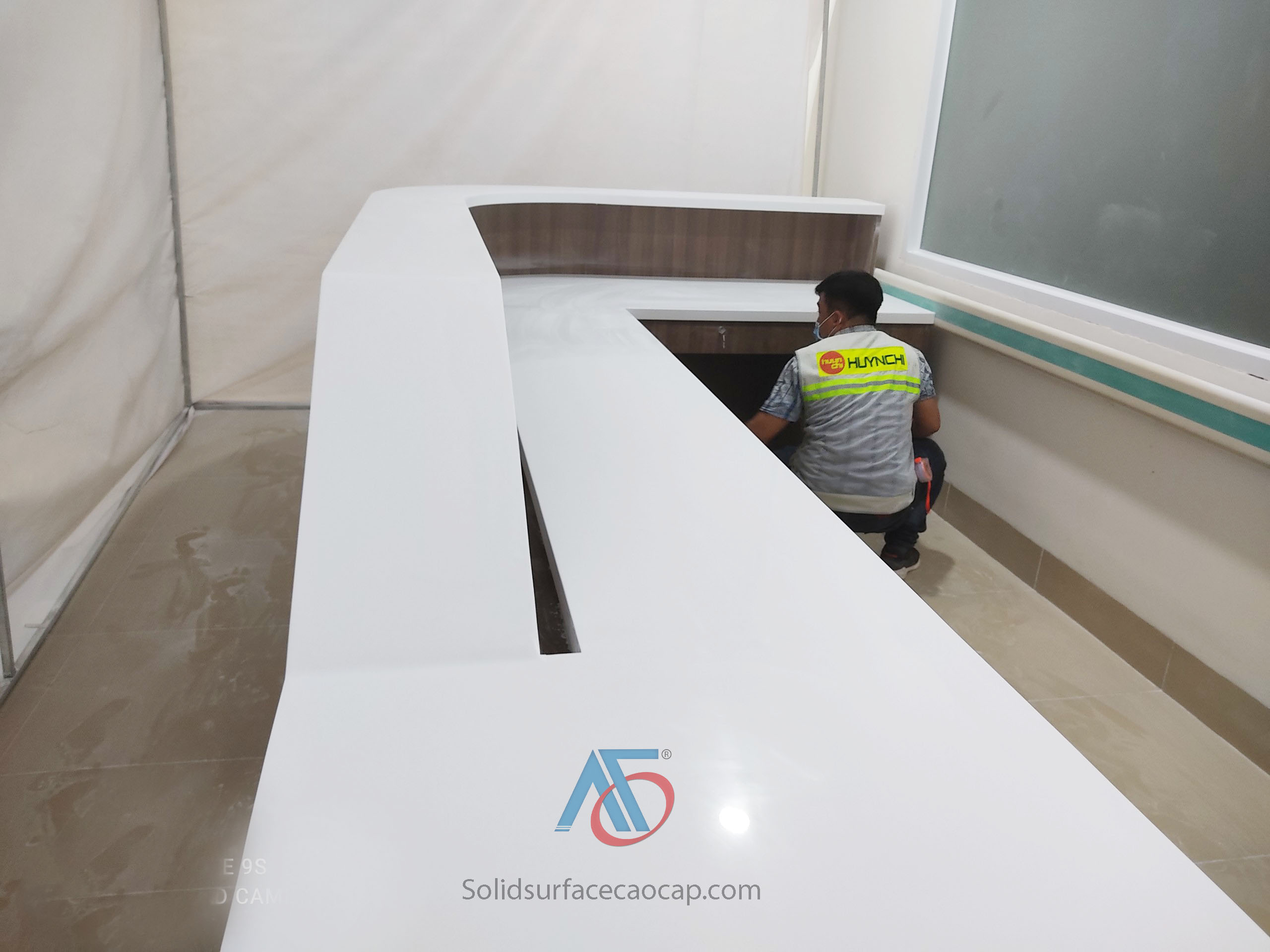 Lắp đặt Quầy lễ tân đá Solid Surface liền khối cho nhà thuốc
