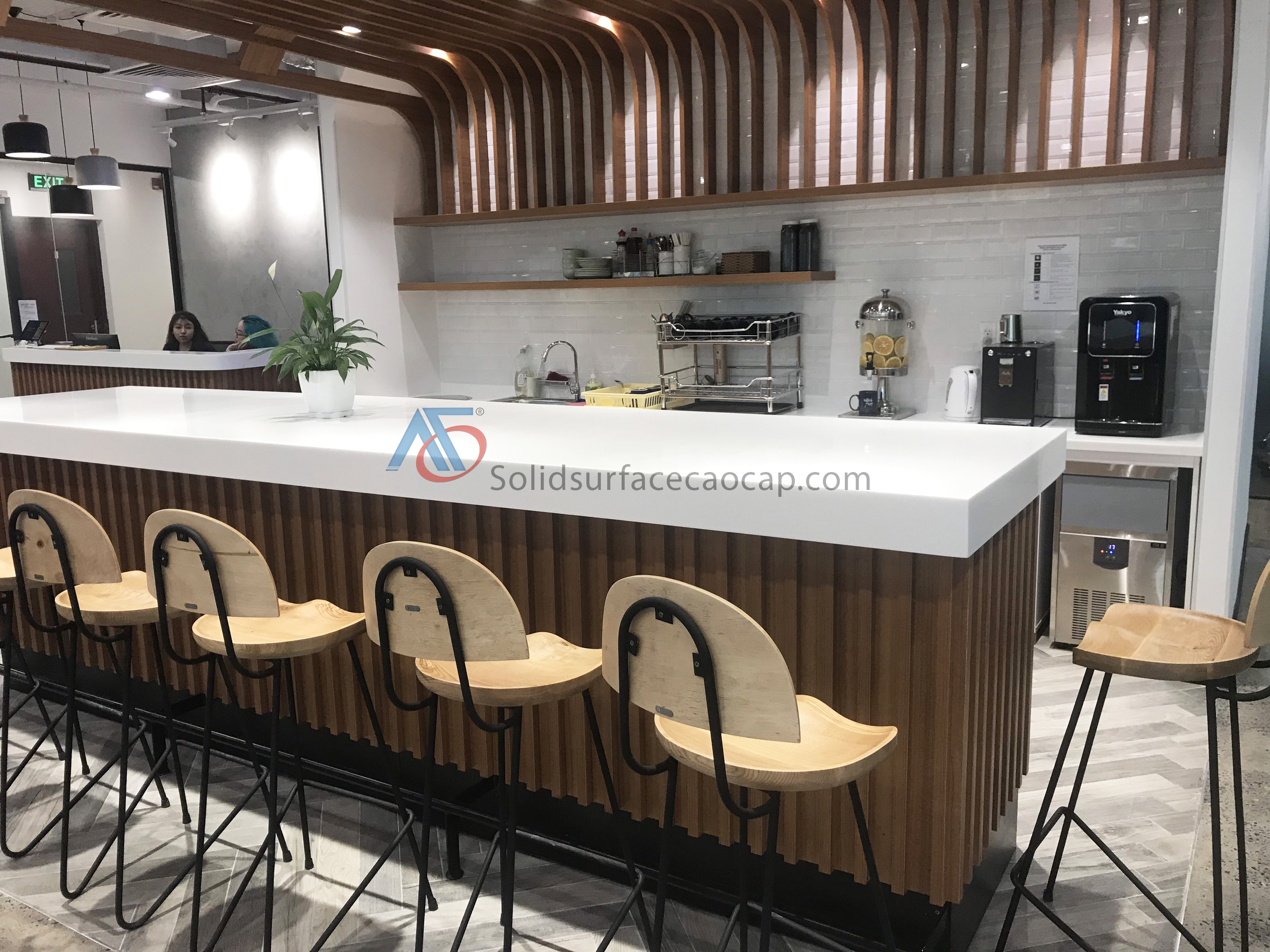 Mặt đá ốp bàn đảo Solid Surface cho văn phòng