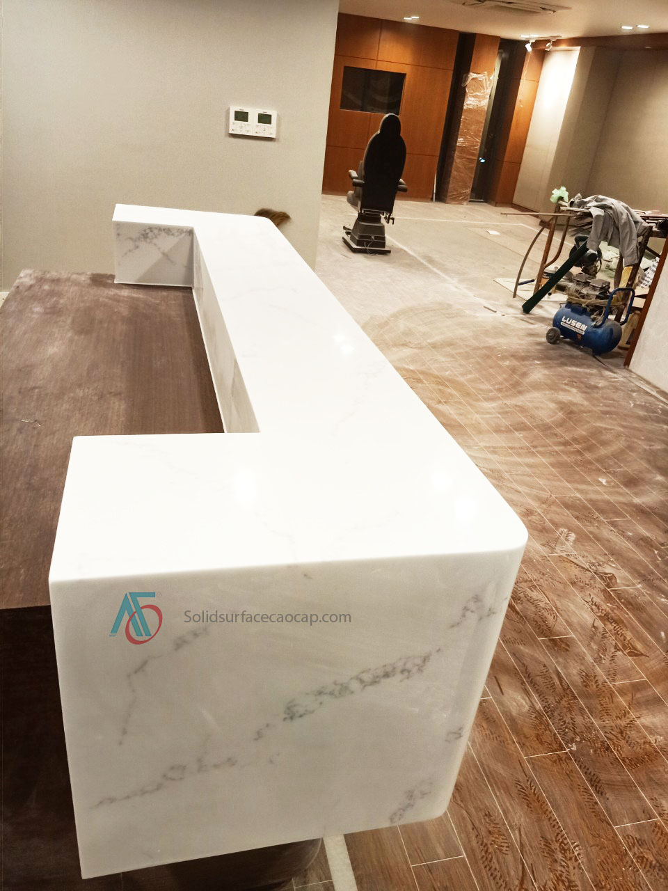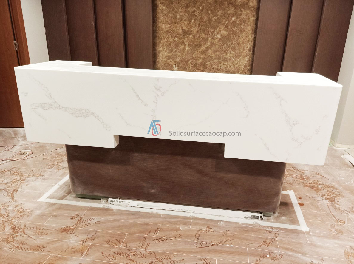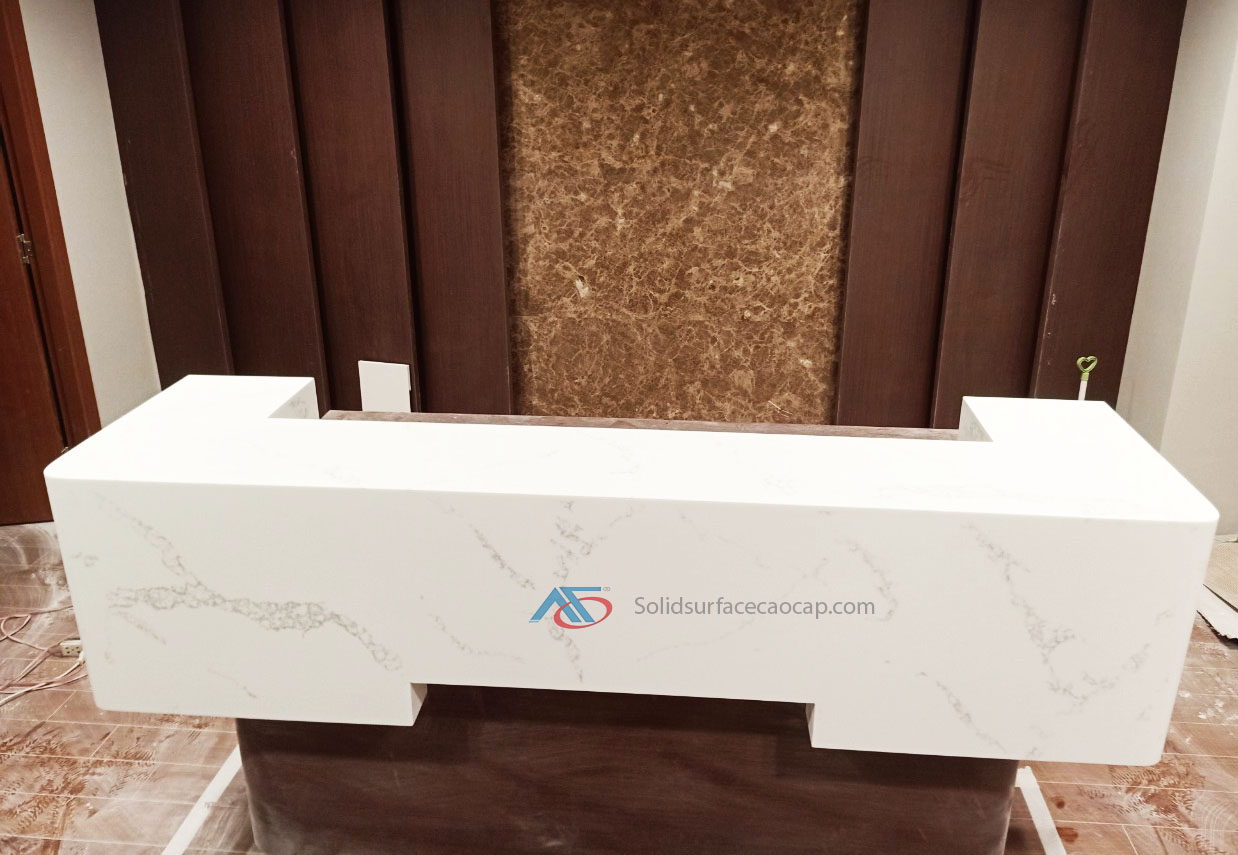 Mặt đá nhân tạo Solid Surface là dòng đá dùng để ốp mặt quầy lễ tân. Là dòng sản phẩm đặc trưng làm để ốp mặt quầy lễ tân sang trọng và hiện đại.