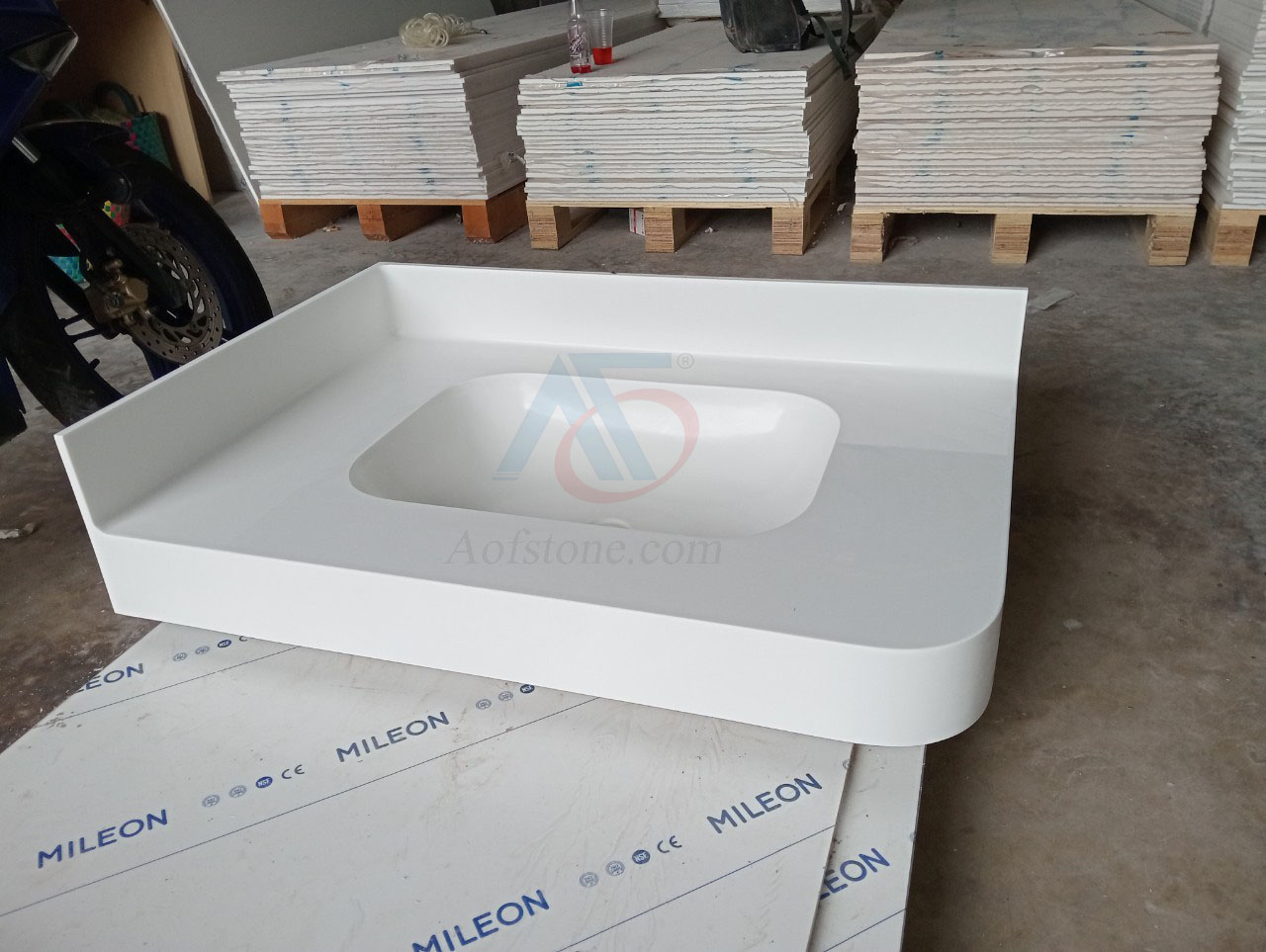 Nội thất AOF đã nhập khẩu đá nhân tạo Solid Surface từ nhà máy Hàn Quốc về xưởng sau đó thi công gia công làm bồn rửa đá nhân tạo theo yêu cầu của khách hàng. Mỗi khách hàng đều sẽ được chúng tôi tư vấn về màu sắc, nguồn gốc và được khảo sát, đo đạc kích thước phù hợp rồi mới ra đá theo đúng kích thước đã đo.