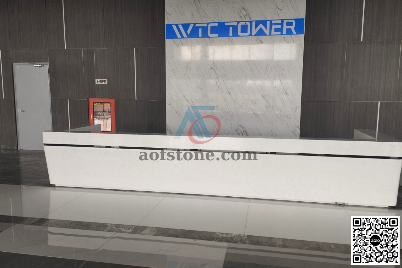 Nội thất AOF chuyên thi công hoàn thiện các sản phẩm về đá Solid Surface làm mặt đá lavabo, chậu rửa Lavabo, mặt bếp, bàn đảo, quầy lễ tân,bồn tắm,…Các sản phẩm về đá nhân tạo solid surface luôn được đảm bảo về chất lượng, màu sắc sang trọng, thi công nhanh chóng, bảo hành sản phẩm 5 năm.