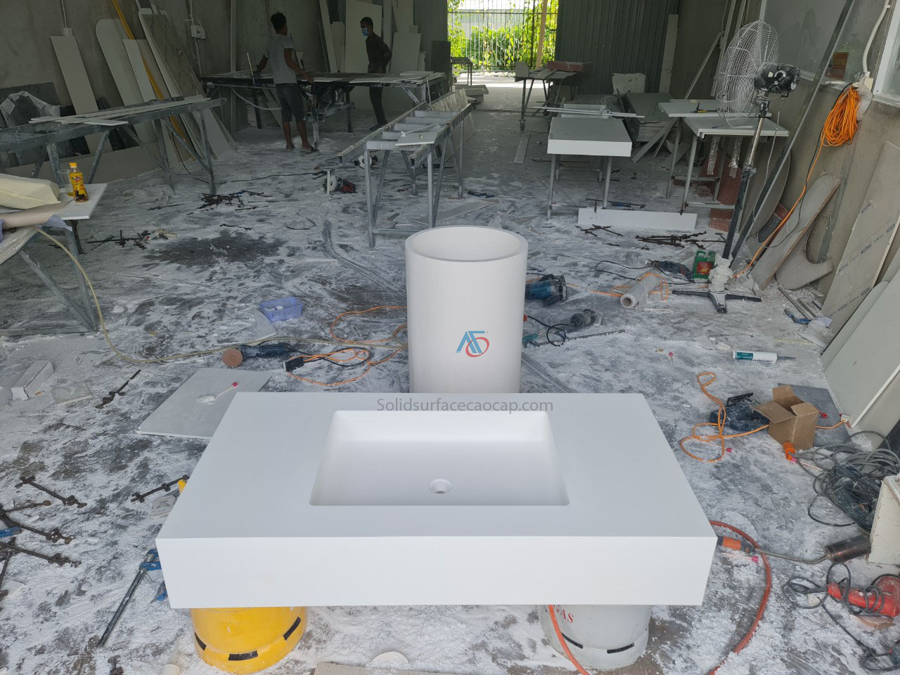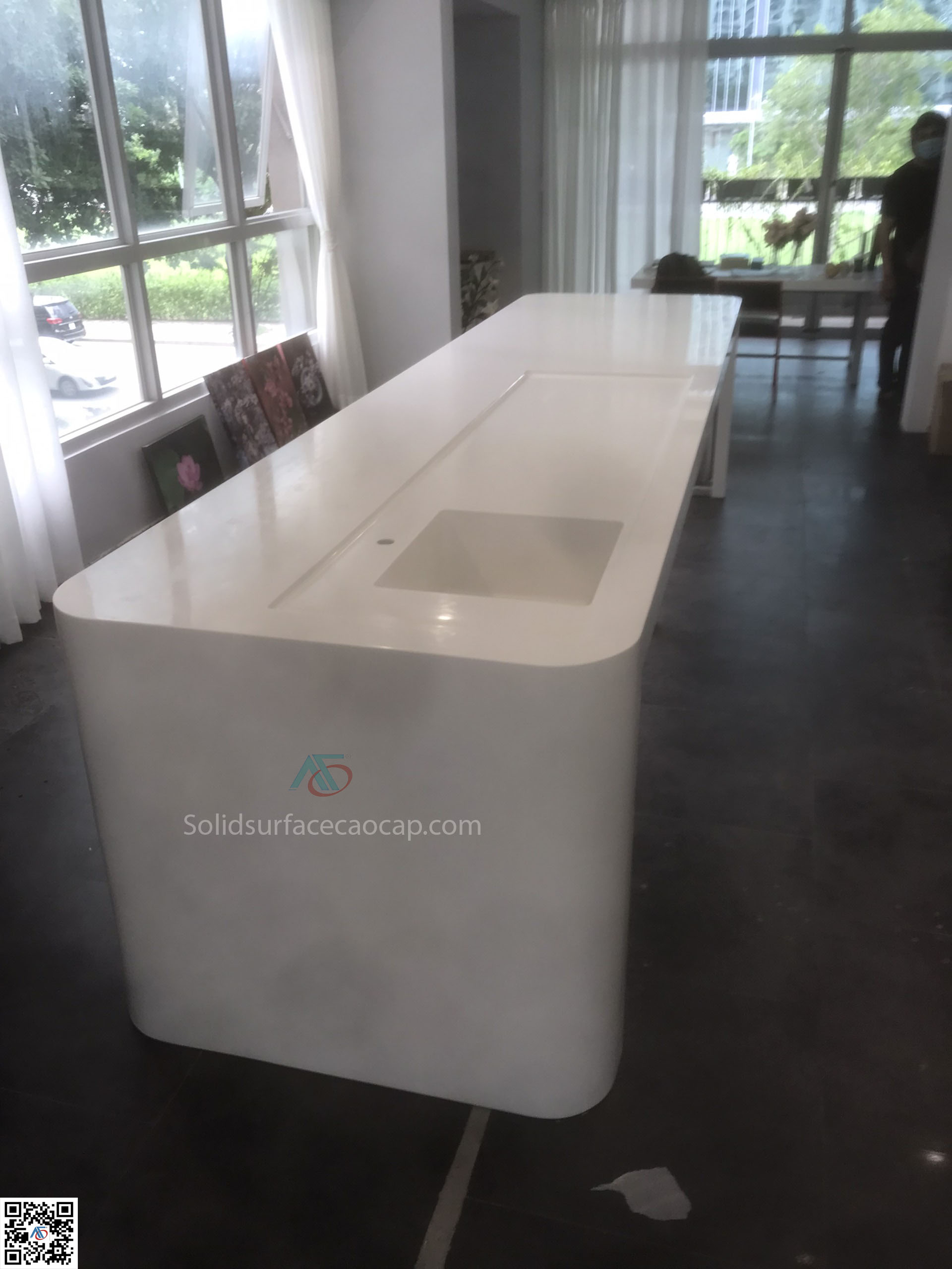 Hình ảnh thi công chậu rửa chén đá nhân tạo Solid Surface liền khối