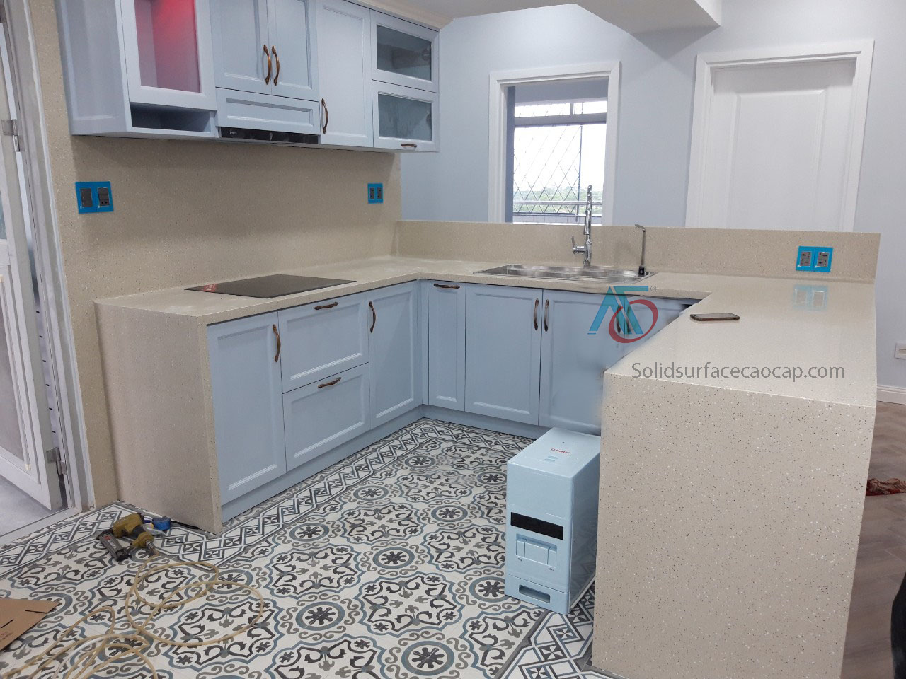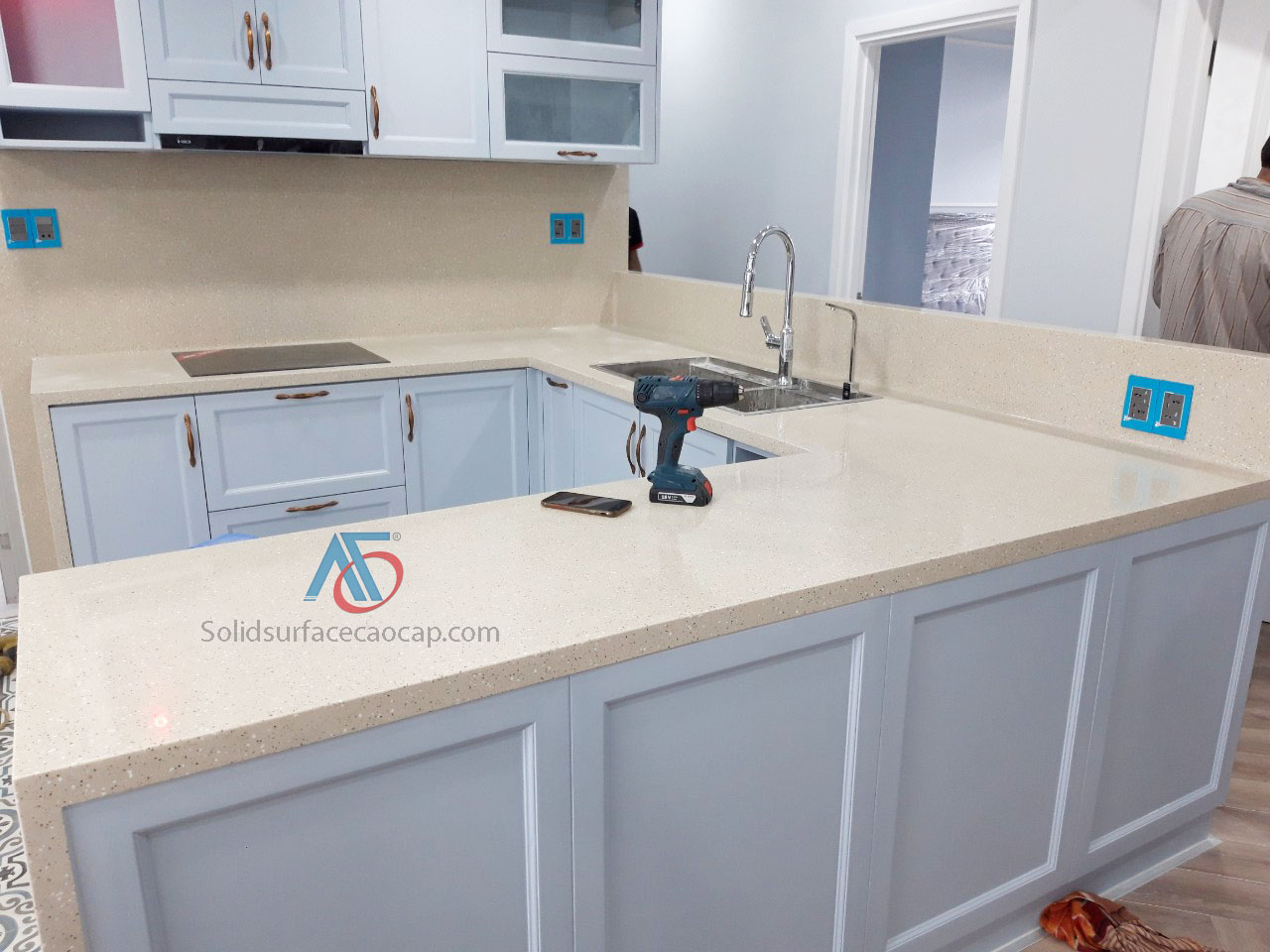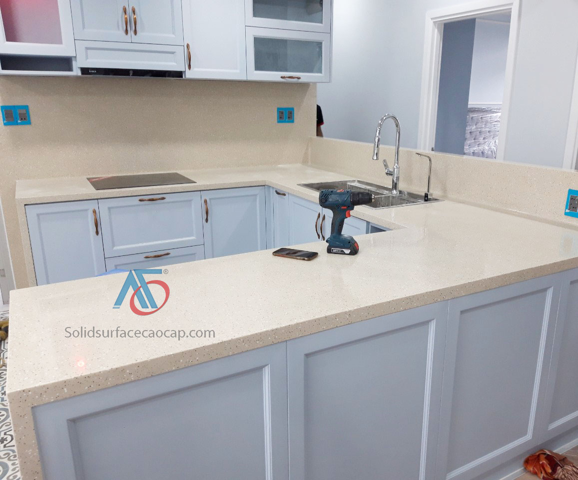 Thi công mặt bếp và vách dựng đá nhân tạo Solid Surface