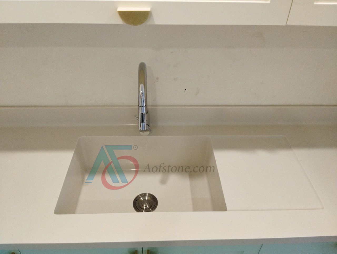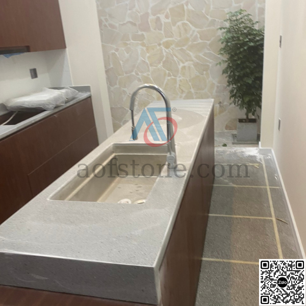 Nội thất AOF đã nhập khẩu đá nhân tạo Solid Surface từ nhà máy Hàn Quốc về xưởng sau đó thi công gia công làm chậu rửa chén theo yêu cầu của khách hàng. Mỗi khách hàng đều sẽ được chúng tôi tư vấn về màu sắc, nguồn gốc và được khảo sát, đo đạc kích thước phù hợp rồi mới ra đá theo đúng kích thước đã đo.