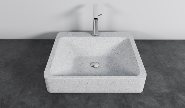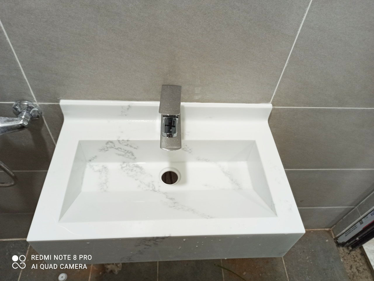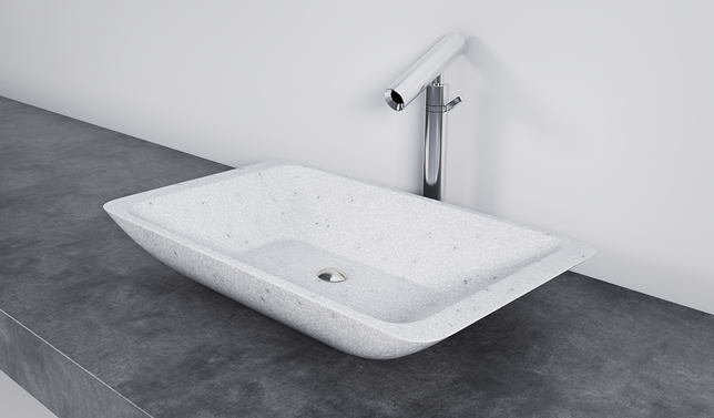 Với kiểu dáng vuông và các cạnh trong của lavabo được mài mềm trơn mịn giúp không bị đọng nước. Với màu trắng hạt giúp cho cả không gian sáng sạch nhưng không đơn điệu bởi những hạt màu