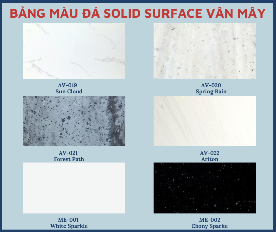 THAM KHẢO THÊM==> BẢNG MÀU ĐÁ NHÂN TẠO SOLID SURFACE