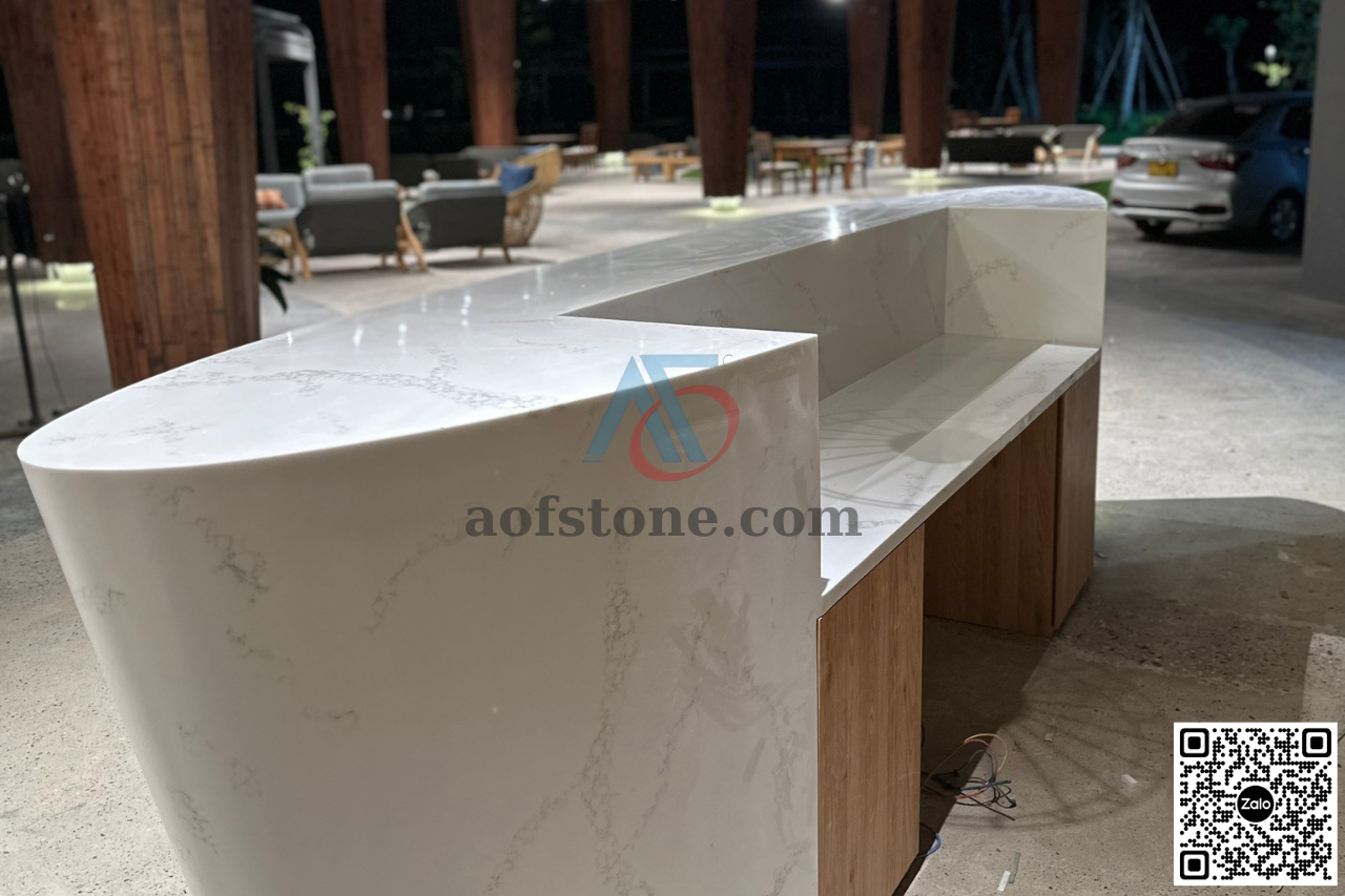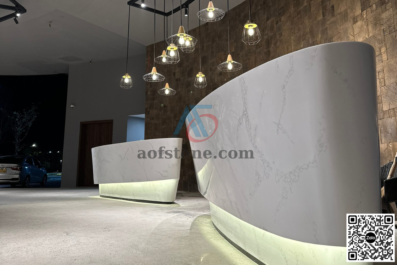 Nội thất AOF chuyên thi công hoàn thiện các sản phẩm về đá Solid Surface làm mặt đá lavabo, chậu rửa Lavabo, mặt bếp, bàn đảo, quầy lễ tân,bồn tắm,…Các sản phẩm về đá nhân tạo solid surface luôn được đảm bảo về chất lượng, màu sắc sang trọng, thi công nhanh chóng, bảo hành sản phẩm 5 năm.